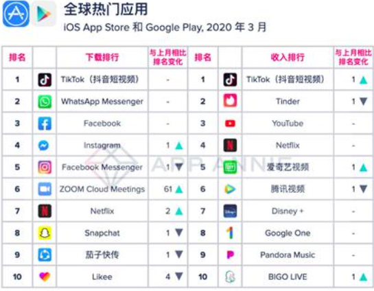 4月14日,数据分析公司App Annie发布了3月全球移动应用月度指数排行榜。在世界人民都开启“宅”家生活时,远程办公、居家学习、线上娱乐成了很多人的日常,这些在体现在榜单上,又有什么新变化?