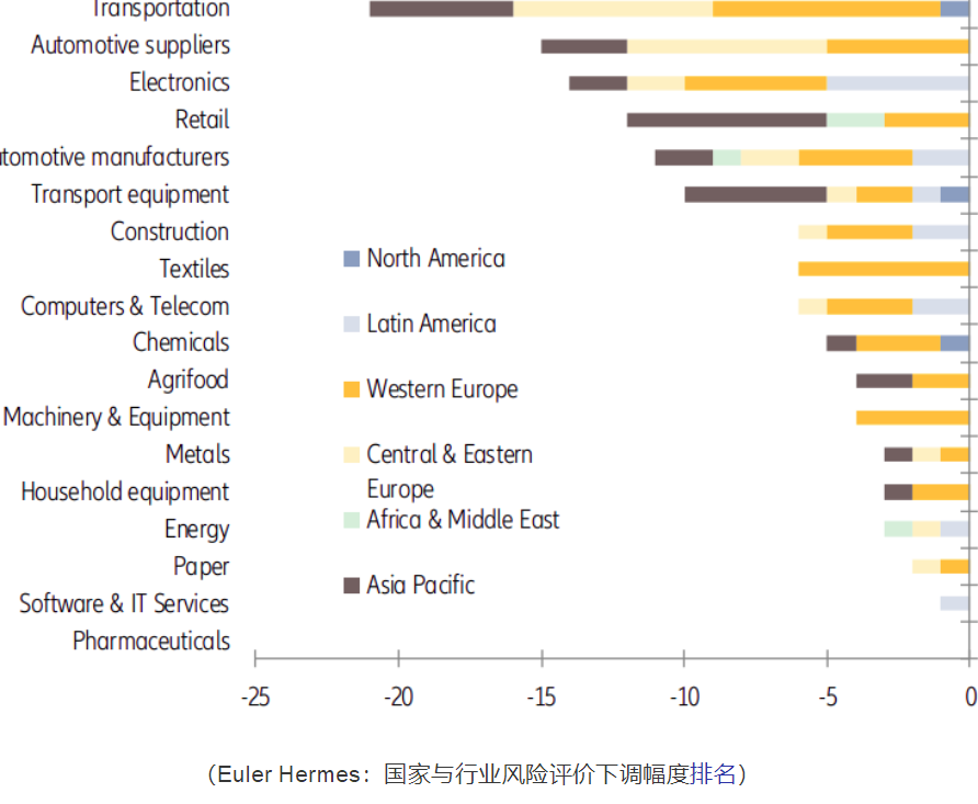 (Euler Hermes:降级行业地区分布)